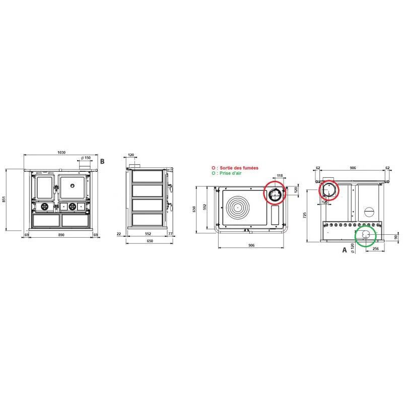 Saída de fumos: Ø150 mm
